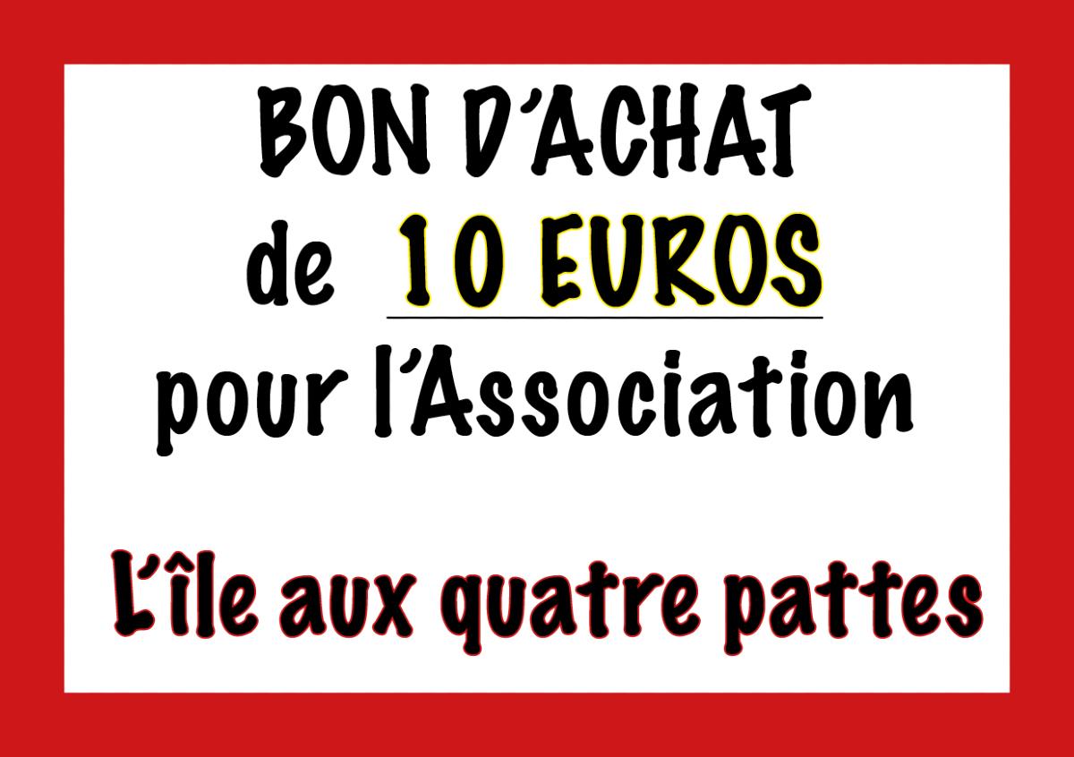 BON DE 10€ EN PRODUITS POUR AIDER L'ASSOCIATION ILE AUX 4 PATTES