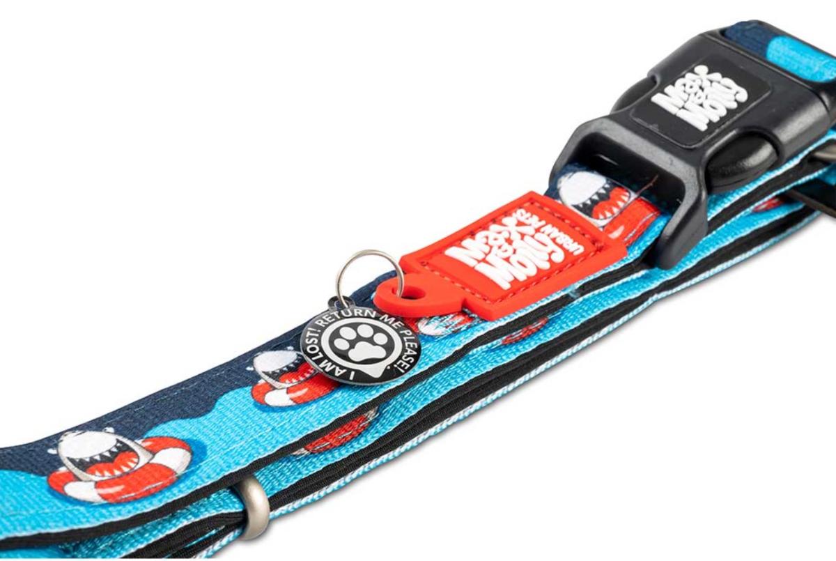 Tous les colliers sont fabriqués en polyester robuste ; côté imprimé avec des motifs uniques et du néoprène doux, à séchage rapide et souple sur le dos. De par le choix des matériaux, les colliers sont ultra légers et particulièrement confortables à porter pour votre chien. Ils disposent également d'un anneau de sécurité qui les empêche de s'échapper lors de l'enfilage et du retrait du collier. La taille est réglable en continu grâce au curseur.