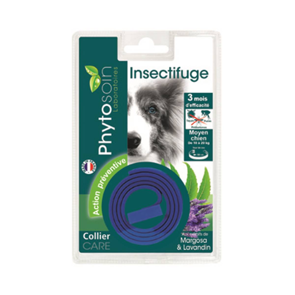 Les insectes nuisibles et autres parasites du chien sont très sensibles à certaines odeurs qui les repoussent. Le collier insectifuge chien de taille moyenne Phytosoin a été spécialement conçu pour un usage préventif. La combinaison d’actifs végétaux issus du Margosa et de l’huile essentielle de lavandin, tous deux reconnus pour leur effet répulsif, protégera votre compagnon des désagréments liés à ces nuisibles. Grâce à son procédé de fabrication, ce collier diffusera ses actifs de façon continue pendant 3 mois, sans gêner l’odorat de votre chien. Son action optimale nécessite quelques jours et il ne craint ni l’eau, ni l’humidité. Nous fabriquons ce collier en France où, depuis 60 ans, notre savoir-faire et notre amour des animaux nous poussent à trouver le meilleur des plantes pour traiter préventivement vos animaux contre les ectoparasites. Longueur du collier : 60cm Utilisez les biocides avec précaution. Avant toute utilisation, lisez l’étiquette et les informations concernant le produit.