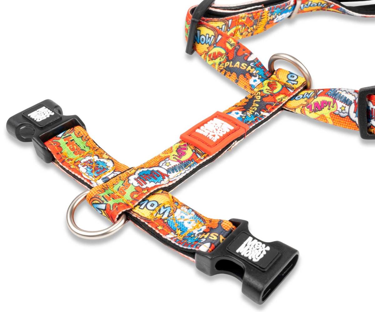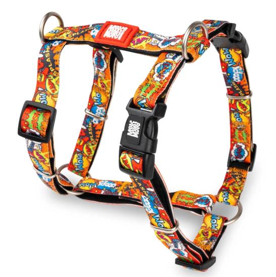 Les harnais en H sont constitués d'un côté en polyester robuste imprimé avec des motifs uniques et d'un néoprène doux, souple et à séchage rapide sur le dos. De par le choix des matériaux, les harnais H sont ultra légers et particulièrement confortables à porter pour votre chien. Votre ami à quatre pattes ne remarquera même pas qu'il porte un harnais.