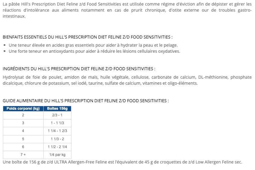Hill's PRESCRIPTION DIET Chat Z/D Food Sensitivities boite 156g