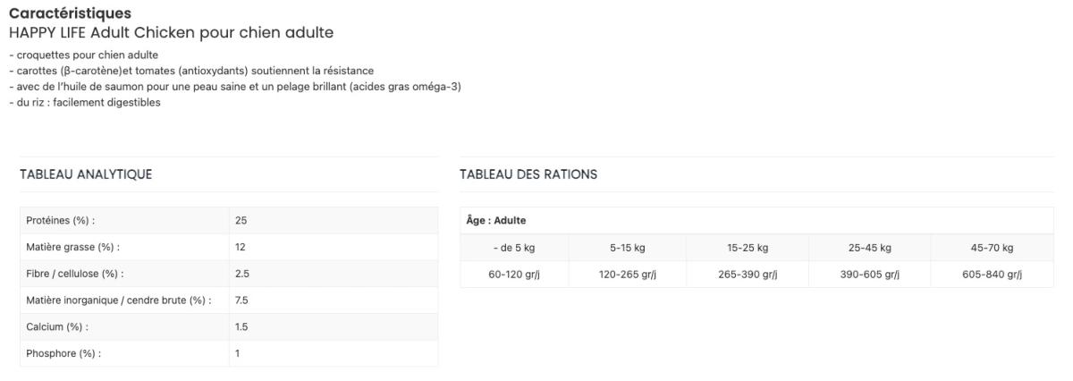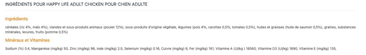 Happy life Adult au Poulet est un aliment délicieux et varié au poulet qui fournit tous les éléments nutritifs nécessaires à la vitalité du chien adulte