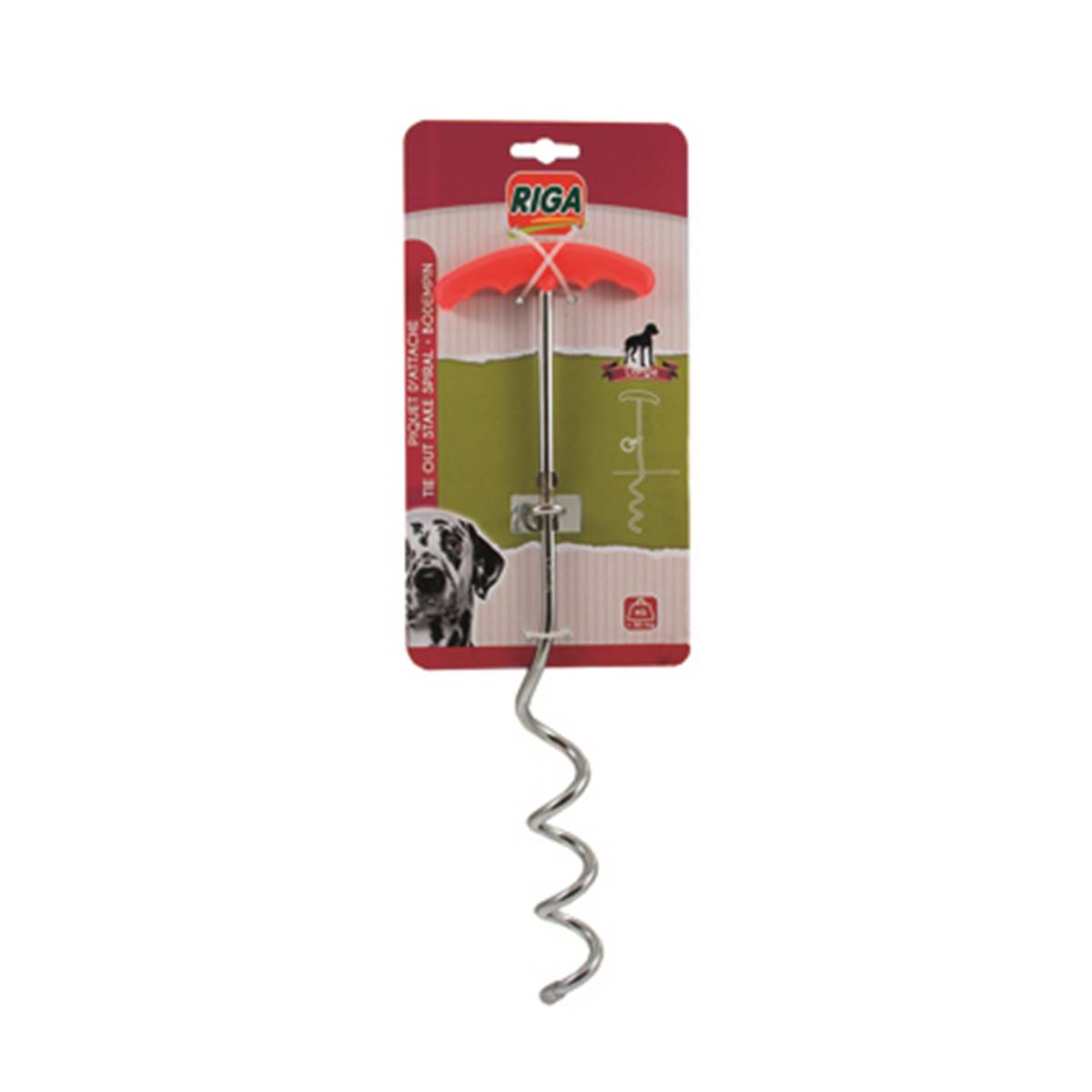 Ce piquet d'attache composé d'acier chromé résiste à tous les temps.