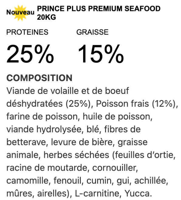 PRINCE PLUS ADULT SPORT POISSON 20KGS