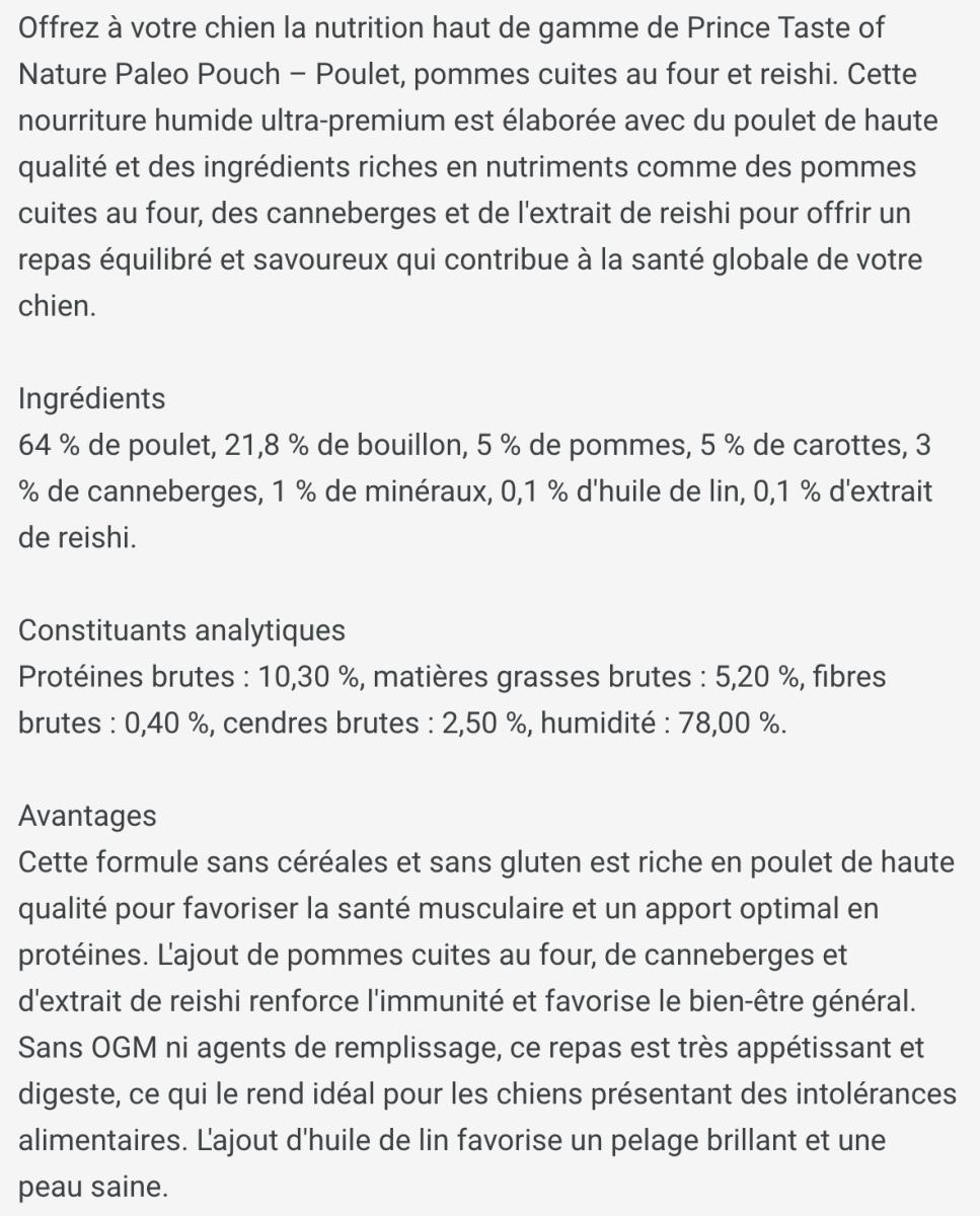 PRINCE TASTE OF NATURE PALEO POUCHES Chicken Apples 150g