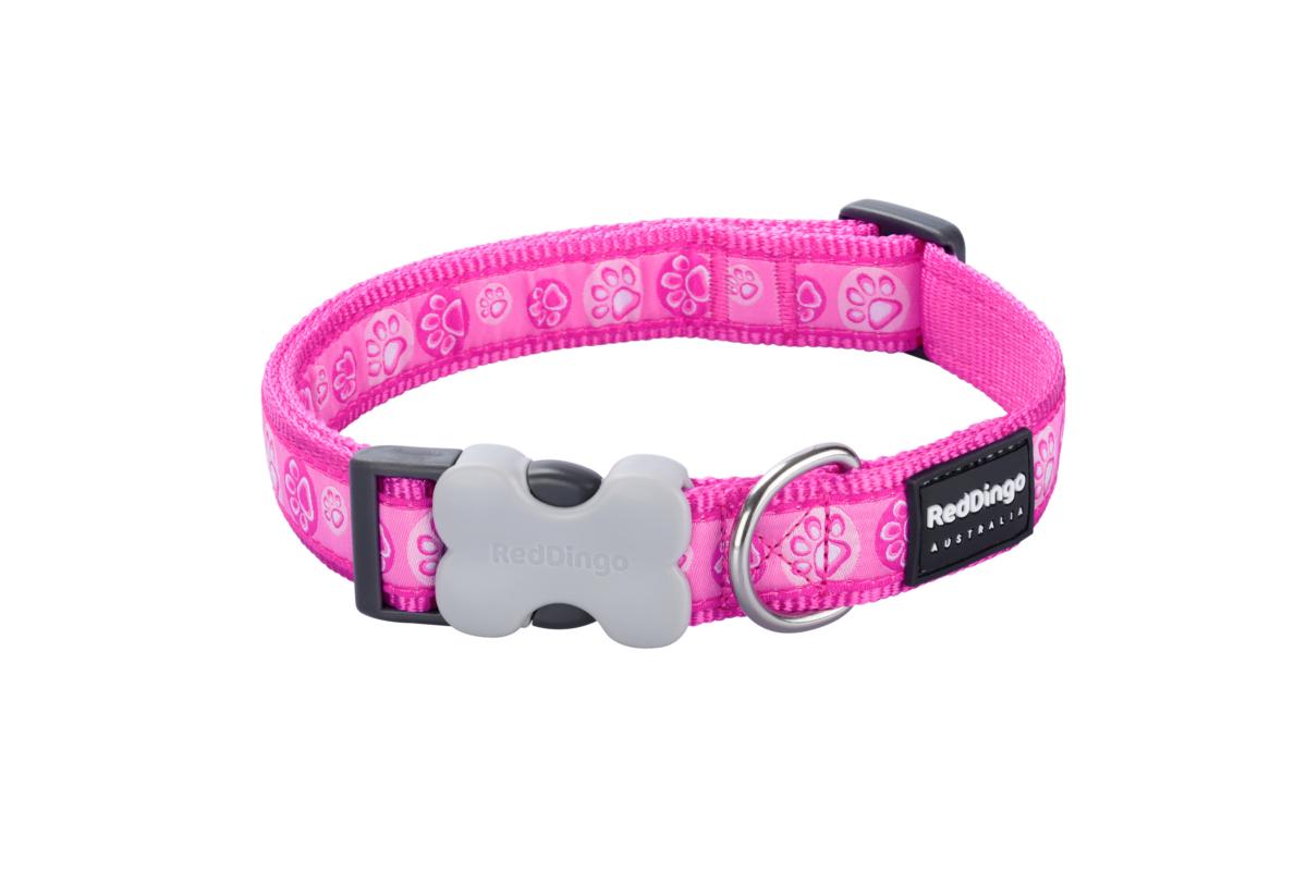RED DINGO Dog collier Paw Impressions Hot Pink XS 12mm x 20-32cm