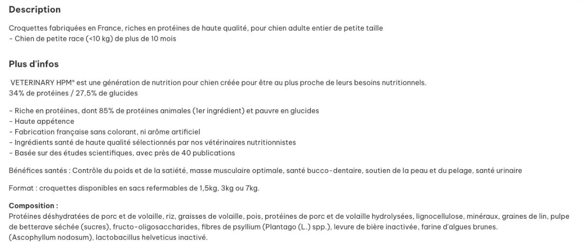 VET HPM ADULT DOG SMALL & TOY 3 kg