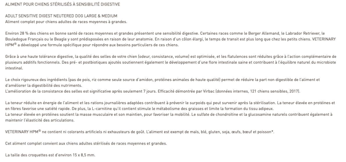 VET HPM ADULT SENSITIVE NEUTERED DOG LARGE & MEDIUM 12kg