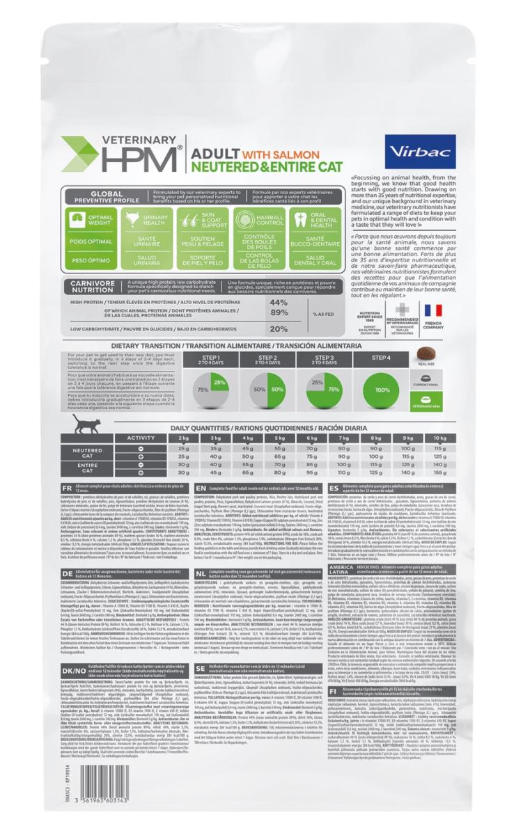 VET HPM ADULT WITH SALMON NEUTERED & ENTIRE CAT 1,5 kg