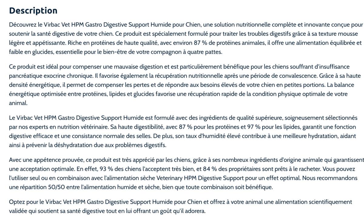 VET HPM DOG WET DIGESTIVE SUPPORT MOUSSE Etui 9 X 300g